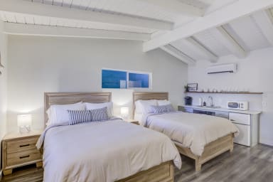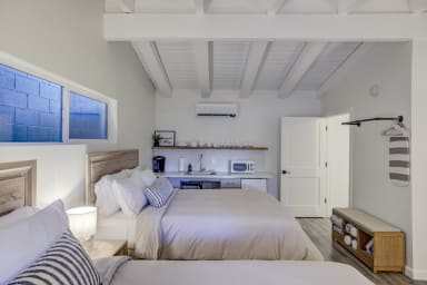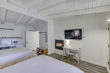 Literally 1.5 blocks from Highway 50 and Stateline and only a 6-minute walk to Heavenly Village & Gondola, casinos and restaurants. This is a private studio as part of a boutique 11 unit self-serve accommodation. Completely renovated in 2020, this unit comes with an en-suite bath with oversized shower, kitchenette (induction double stovetop available upon request) w/Keurig machine and two queen beds and a work desk. Equipped with a smart TV and on-demand streaming services (occupant needs to have subscription service/no cable). All TVs and wifi are connected to Gigabit cable connectivity.